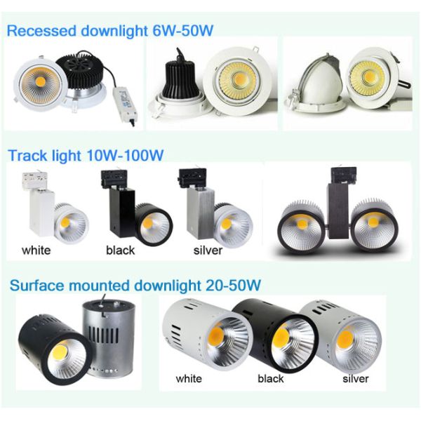 1.Light source: COB light source is made of ceramic PCB and small chips.For example,a 10w COB is made of 160 pcs chips,and 30w made of 500pcs.